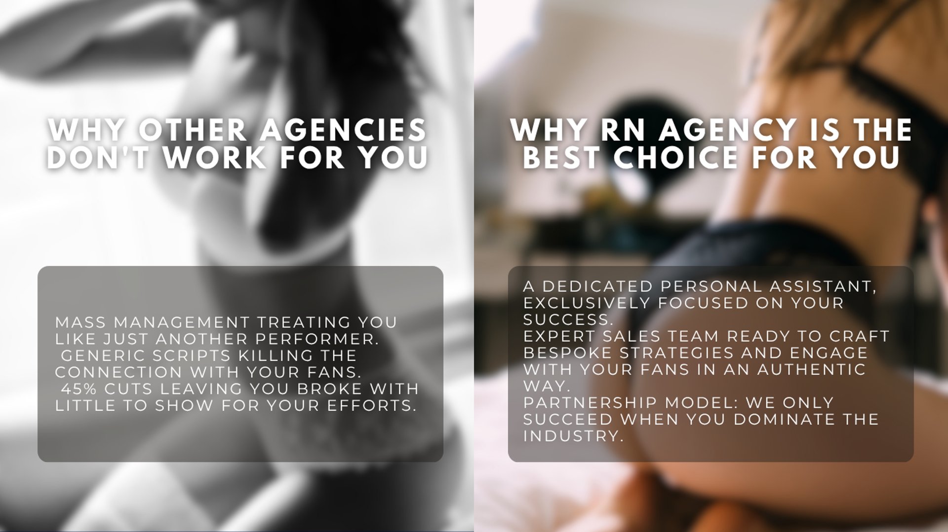 Unleash your full potential and dominate the adult industry with expert management from our team. We’ll help you maximize your growth, engagement, and earnings across all platforms, ensuring you reach the top of your game.